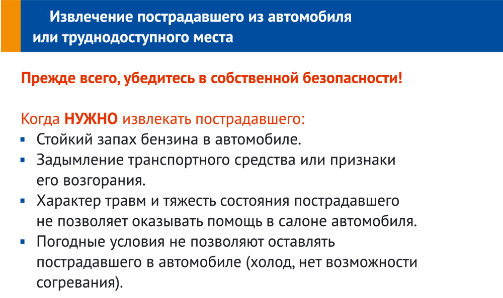 - Извлечение пострадавшего из автомобиля