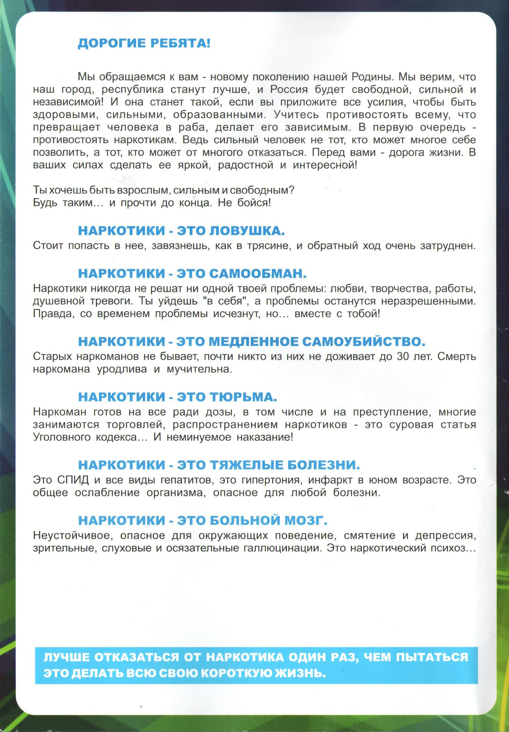 - Буклет "Подросток и наркотики"