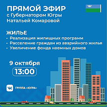Губернатор округа Наталья Комарова в прямом эфире встретится с общественниками, блогерами, главами муниципальных образований и профильных департаментов, застройщиками, представителями Ипотечного агентства Югры и Региональной службы по тарифам....